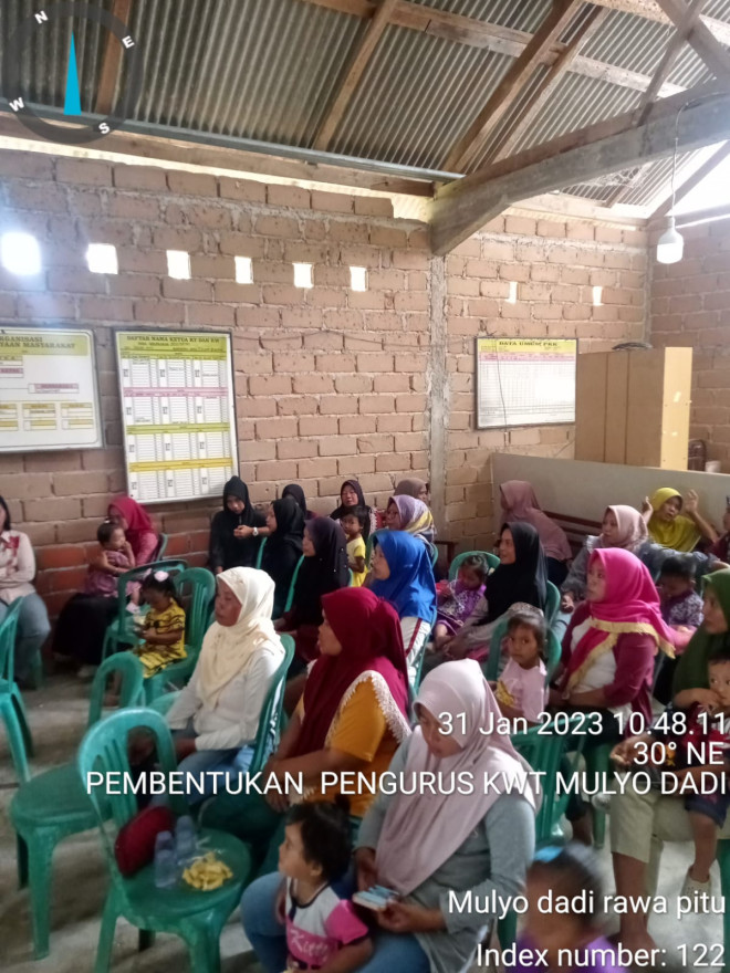 Kelompok Tani Wanita (KTW) dibentuk sebagai upaya pelibatan kaum perempuan secara langsung dalam usaha-usaha peningkatan hasil pertanian, seperti menjadi bagian dari motivator dalam adopsi dan pengenalan teknologi tani. Oleh karena itu pada tanggal 31 Januari 2023 di dusun Karangnongko desa Mulyo Dadi Kecamatan Rawa Pitu, ibu-ibu di dusun tersebut berkumpul dan bermusyawarah membentuk kelompok wanita tani dengan dihadiri ibu kepala UPT Pertanian Wilayah I, Kepala Desa, PPL, Kepala dusun dan Ketua RT setempat.