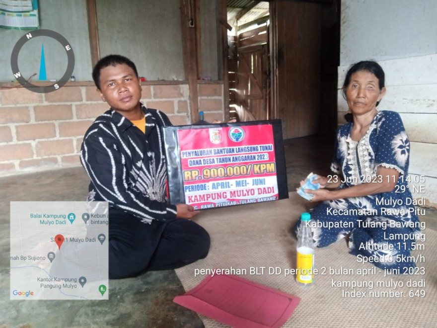 Rabu, 07 Juni 2023 Pemerintah Desa Mulo Dadi Kecamatan rawa Pitu melakukan pembagian BLT DD tahap II Tahun 2023. Kegiatan ini dilakukan di Balai Desa Mulyo Dadi Kecamata Rawa Pitu mulai pukul 09.00 sampai dengan selesai. Kegiatan ini merupakan pencairan BLT yang pertama kali di tahun 2023. Adapun jumlah penerima BLT DD ini berjumlah 21 KPM dengan penerimaan sebesar Rp 900.000,00, (untuk bulan April, Mei dan Juni). Syarat pengambilan membawa undangan dari Pemerintah Desa Mulyo Dadi Kecamatan Rawa Pitu, menunjukkan Kartu Tanda Penduduk (KTP). Dalam kesempatan ini Kepala Desa Mulyo Dadi, Imam Yohanes Rudiarto berpesan kepada warga penerima BLT DD agar memaksimalkan penggunaan bantuan ini untuk kepentingan dan kebutuhan pokok terlebih dahulu daripada kepentingan yang lain. Dengan menerapkan Protokol Kesehatan KPM ini juga bersabar untuk antri dan tertib sehingga pelaksanaan bisa berjalan dengan baik dan lancar.